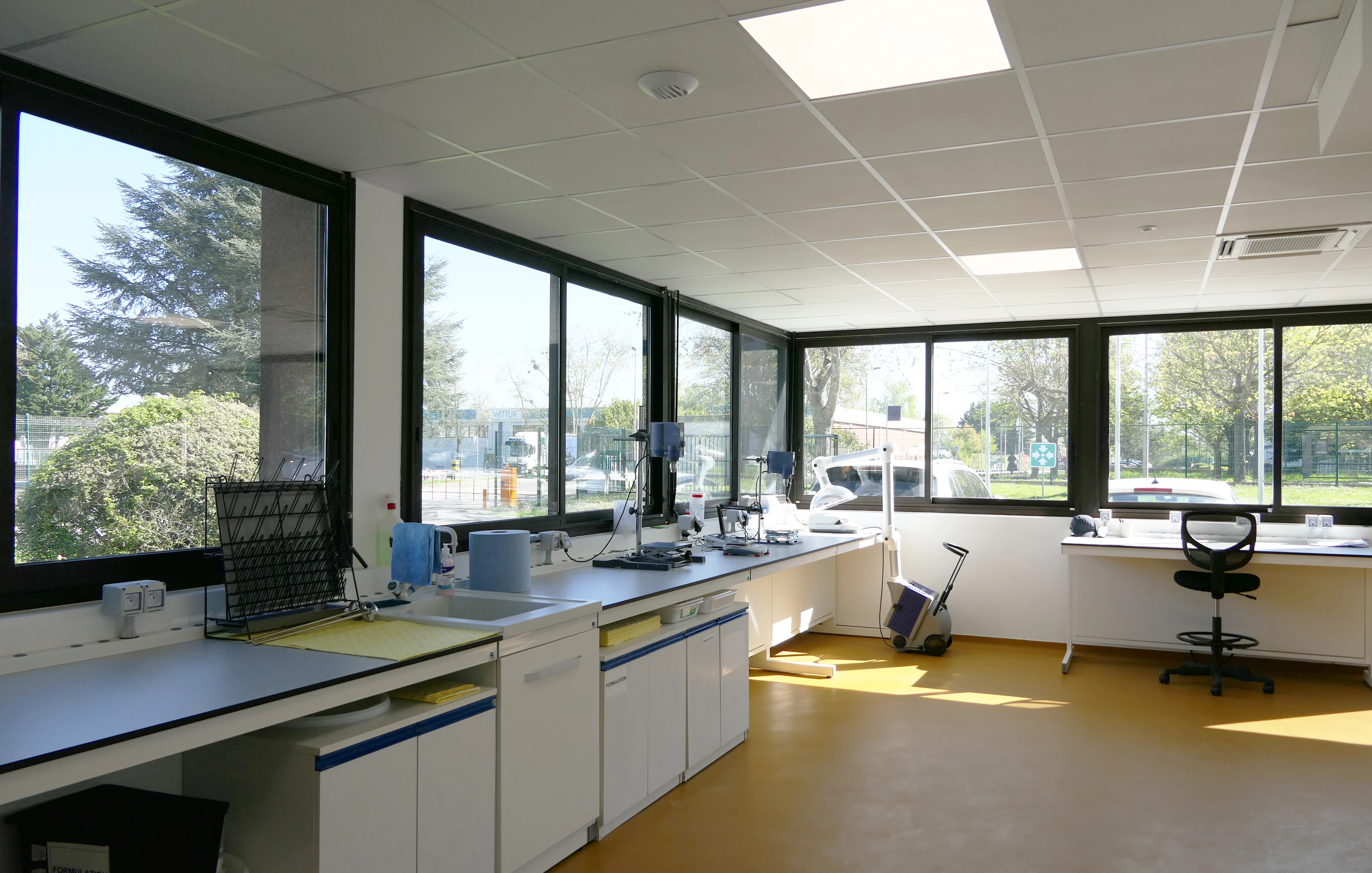 L’agrandissement du laboratoire de Lisses représente une augmentation de 155 m² des infrastructures dédiées à l’assistance technique et au développement. Parmi les nouvelles installations notables figurent des équipements spécifiques, des malaxeurs performants, des paillasses de chimie et des systèmes de rangement optimisés.